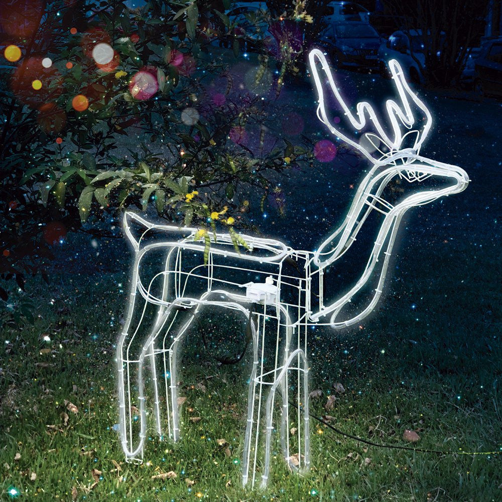 Sendo de fácil montagem, pode ser deixada em diversos locais da casa ou até mesmo do lado de fora. Feita com materiais de alta qualidade, a rena é resistente e durável, garantindo que possa ser usado por muitos Natais. -196 LEDs; -LED Branco; -Não instale em árvores que tenham arranjos, folhas ou galhos revestidos de metal ou metalizados; -Não monte ou instale os fios de maneira que os mesmos possam ser danificados ou cortados; -Desligue-o ao sair de casa.